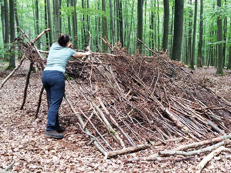 Aus welchen Naturmaterialien kann ich eine Behausung bauen? Wie kann ich die Hütte konstruieren, dass sie Stand hält? Wie baue ich eine regenfeste Hütte im Wald? Hüttenbau regt die Kreativität an und fördert konstruktives, lösungsorientiertes Handeln im Team. Zusätzlich lässt sich diese Methode einsetzen, um das Ankommen an einem Ort zu fördern. Für Fortgeschrittene und Mutige kann der Hüttenbau mit einer Übernachtung im Wald kombiniert werden. (Empfohlen für alle Altersgruppen)